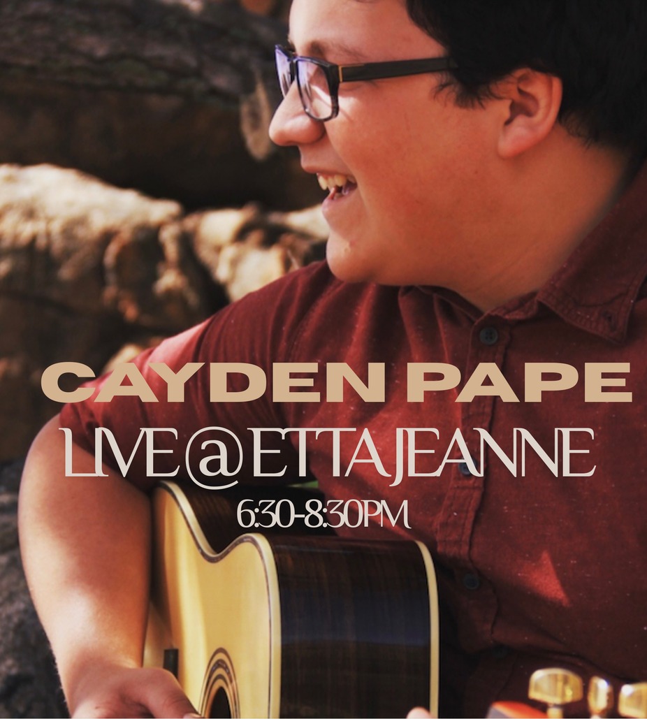 Join us at Etta Jeanne for an evening of live music featuring the talented Cayden Pape, a beloved member of our very own Humble House team. Cayden brings an infectious energy and uplifting spirit to his music. Enjoy savor delicious bites, and enjoy a night of great music and even better company.